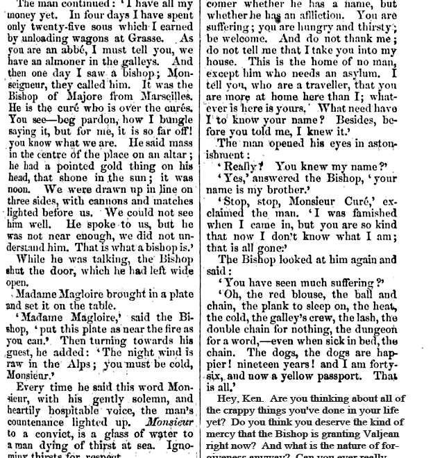 - Ensure that any deep thought on the part of the reader is voluntary and earned. I think about the nature of humanity and our responsibilities to each other when I read Les Miserables. I probably wouldn’t do so if Victor Hugo did something like this: